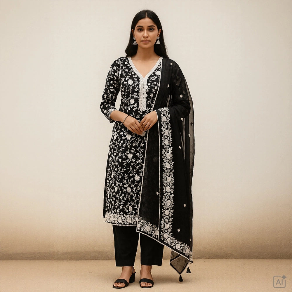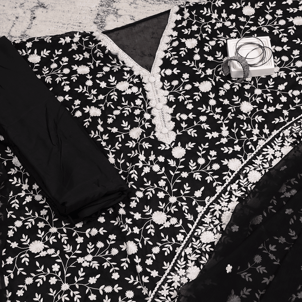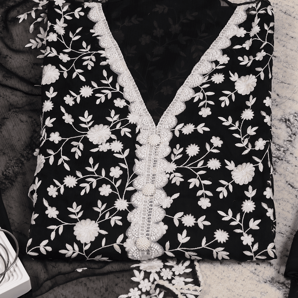 • Kurta-All Over Embroidery On Chiffon Fabric