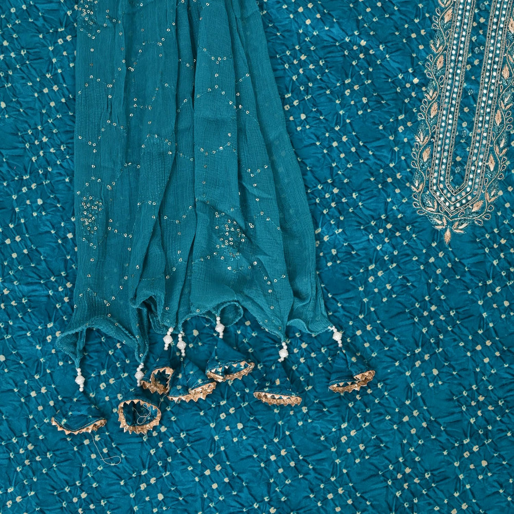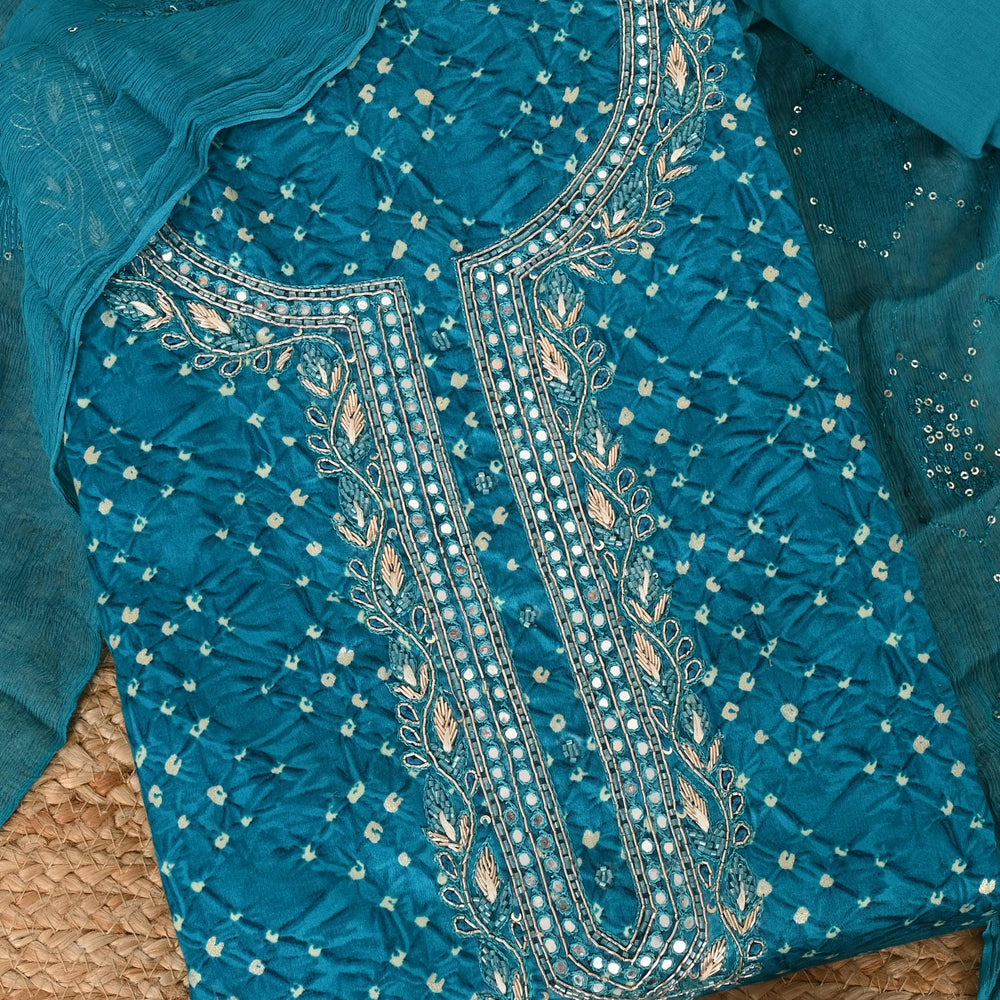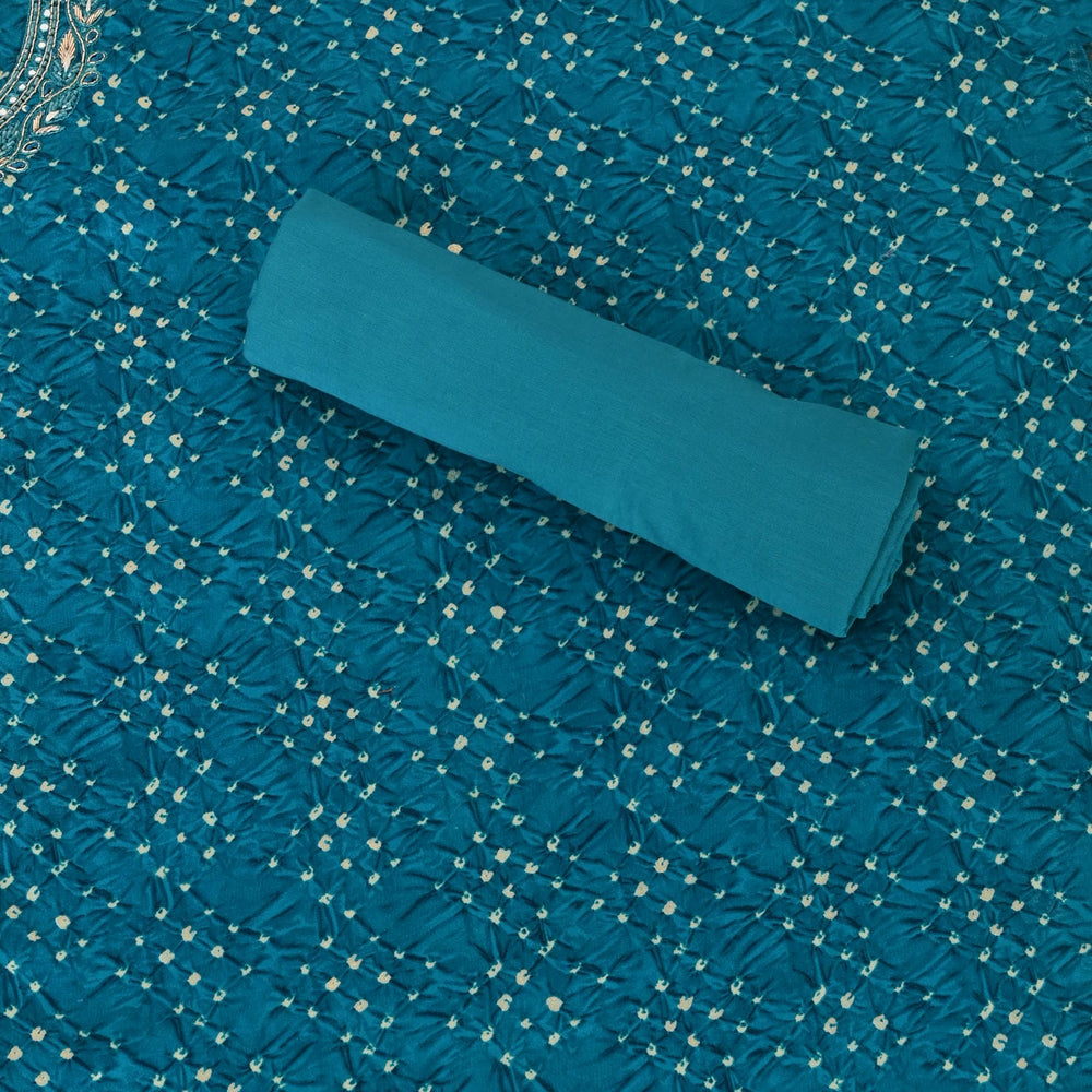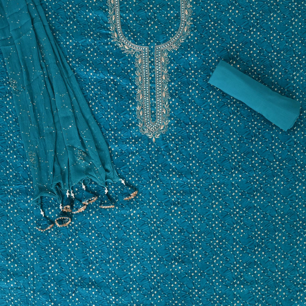 Bright Firozi Bandhani Cotton Unstitched Suit Set