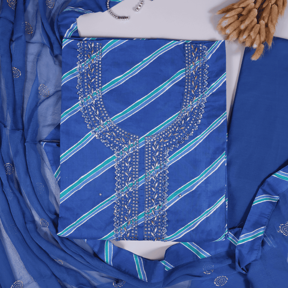 • Kurta-Cotton Fabric with Leheriya Print & Hand Work Neck Line