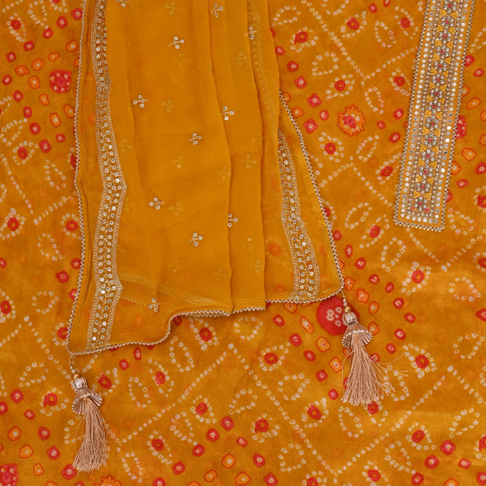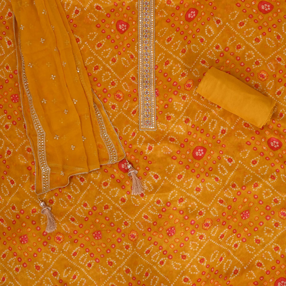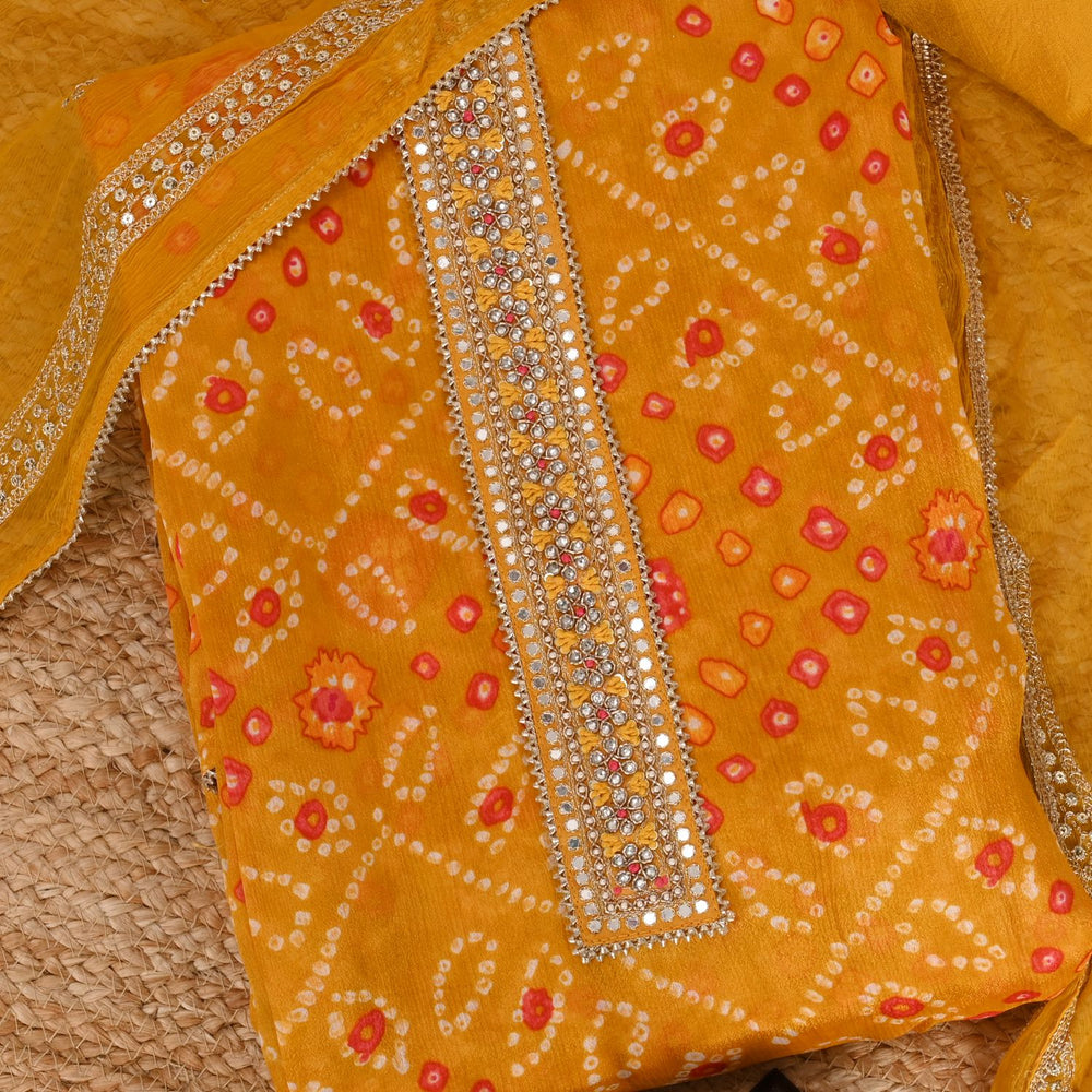 Daffodil Yellow Chinnon Bhandej Unstitched Salwar Suit