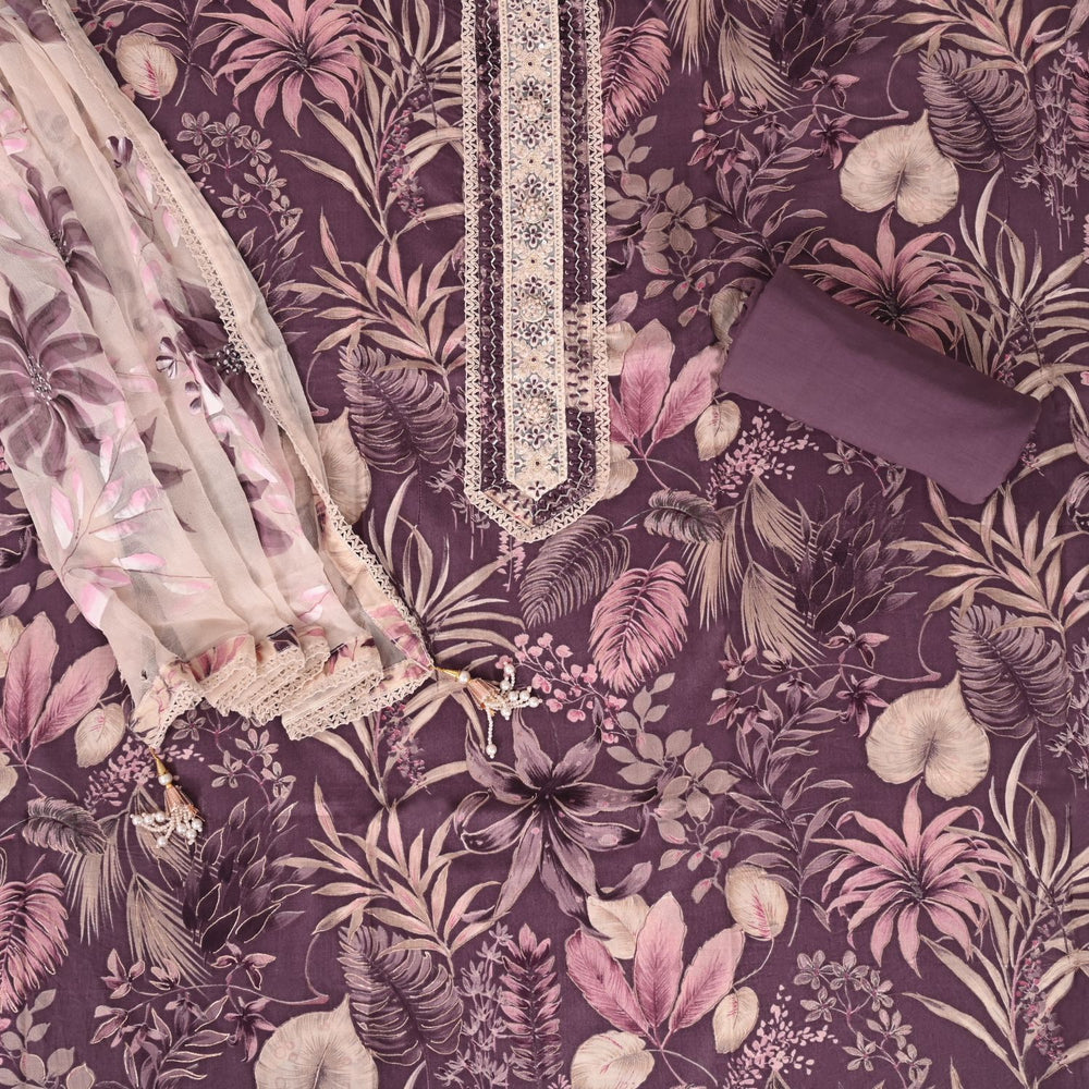 New Mauve Palm Cotton Unstitched Salwar Suit