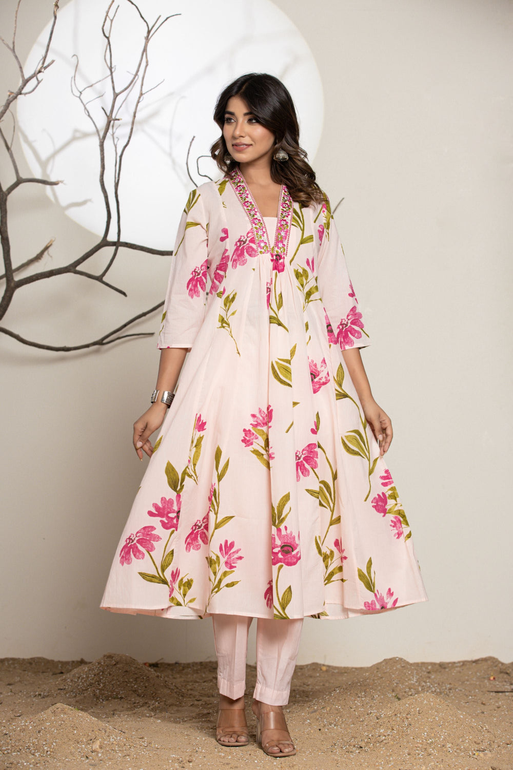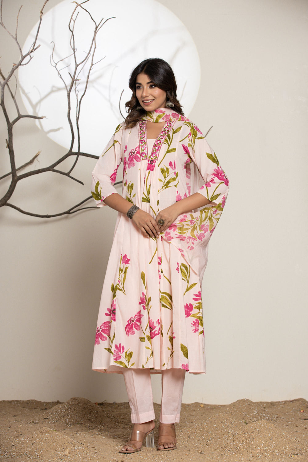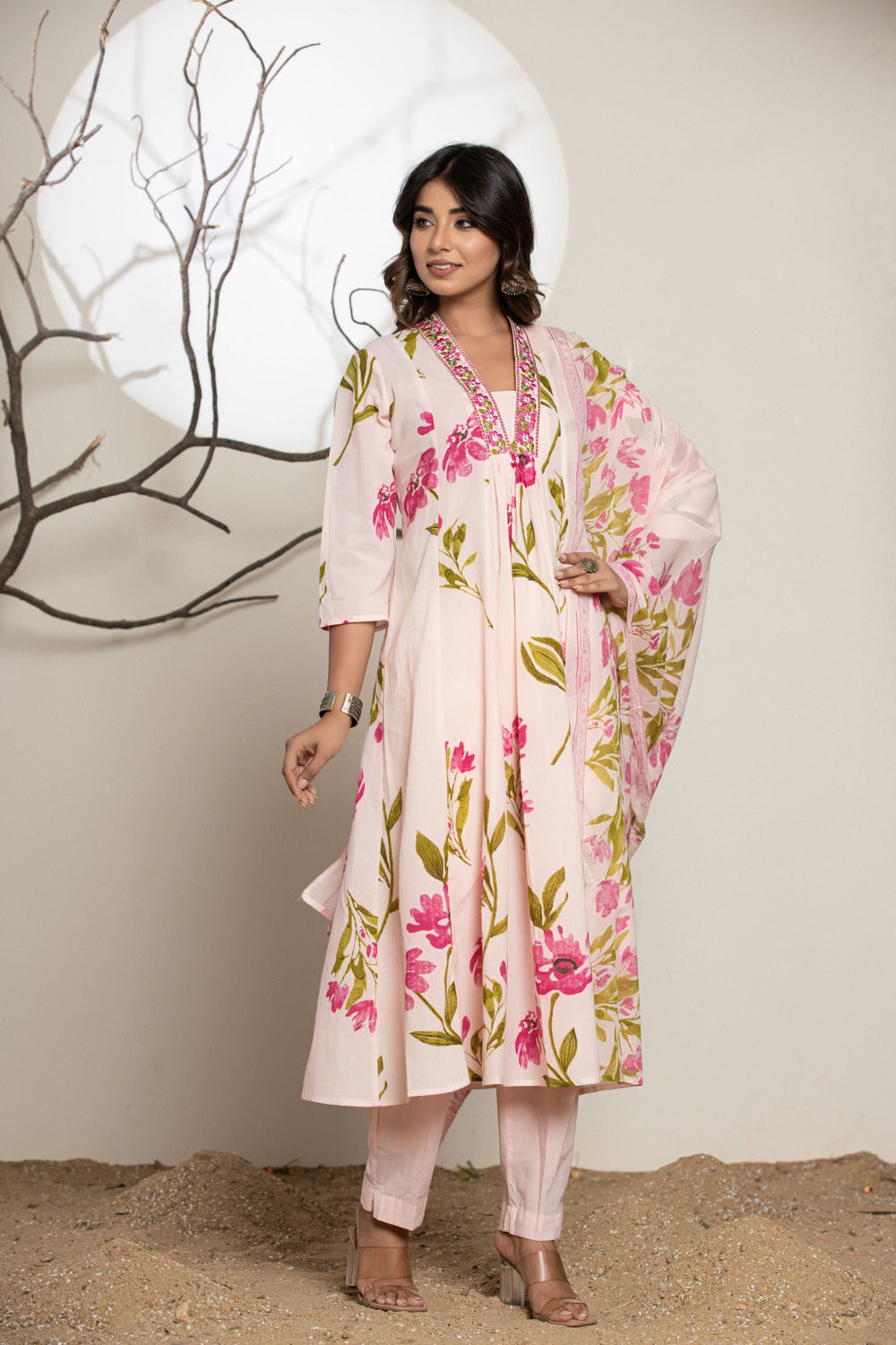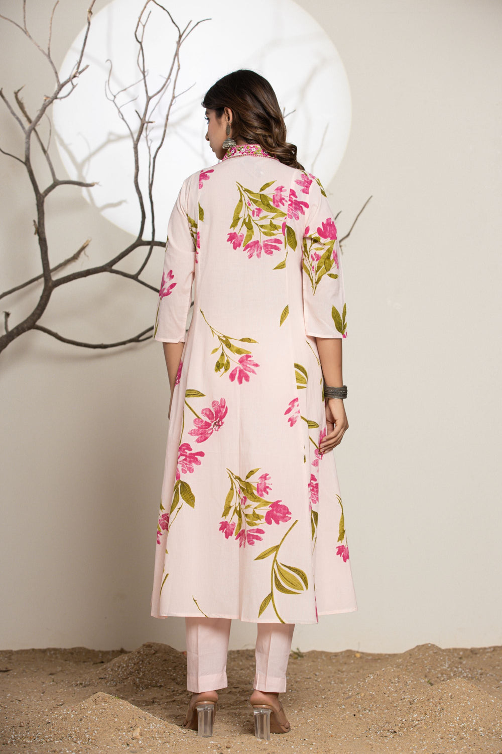 Give your closet a Spring-Summer makeover with this Pastel Pink Flip Collor Cotton Suit Set. The loose, flowy silhouette of the Kurta drapes beautifully over your figure and provides a relaxed, effortless look. The vibrant pink and dark pink hues are eye-catching and perfect for a fun, summery vibe.