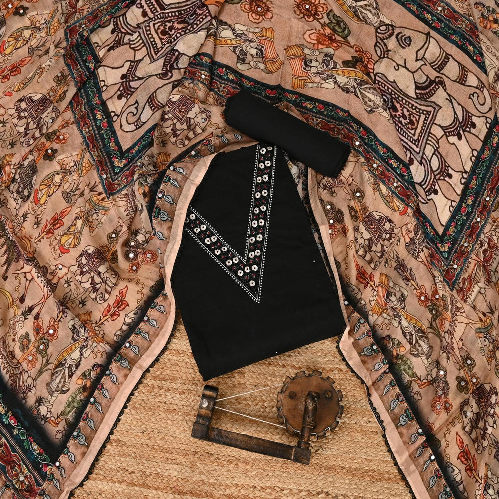Solid Black Kalamkari Dupatta Cotton Unstitched Suit
