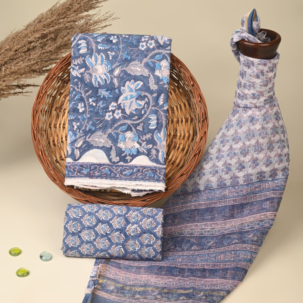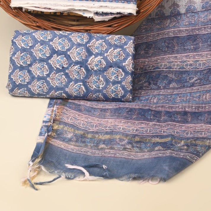 Soothing Blue Pure Kota Doria Dupatta Unstitched Suit Set