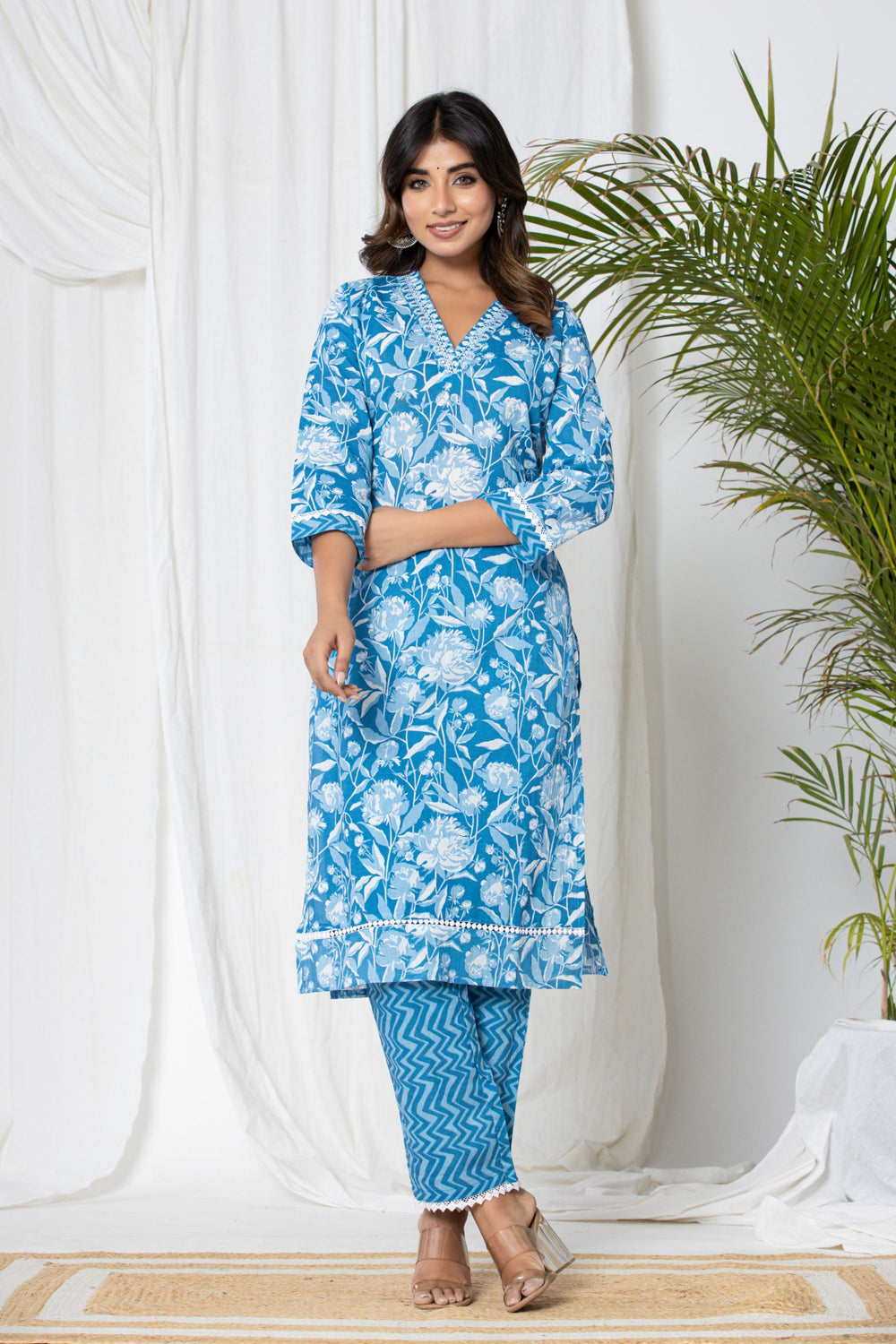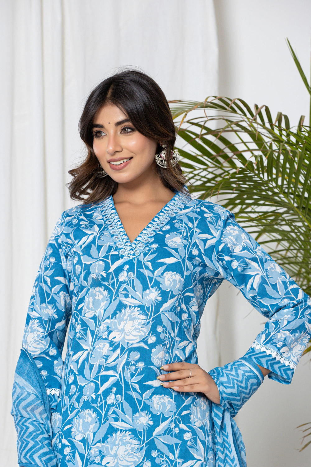A floral marvel, this Suit Set is one that will make you feel like a queen. From the stunning floral print to the dazzling thread work details, it's a true masterpiece. Shop now to slay wherever you go.
