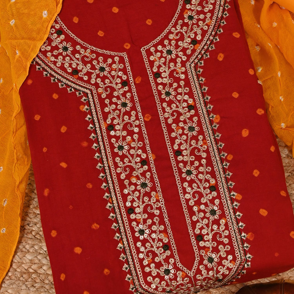 Aesthetich Red Bhandej Cotton Unstitched Salwar Suit