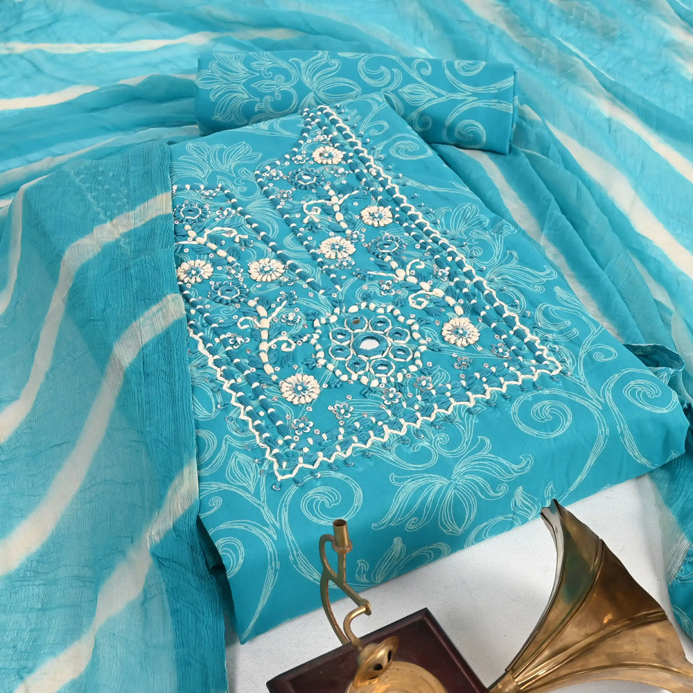 Bright Sky Cotton Unstitched Suit Set