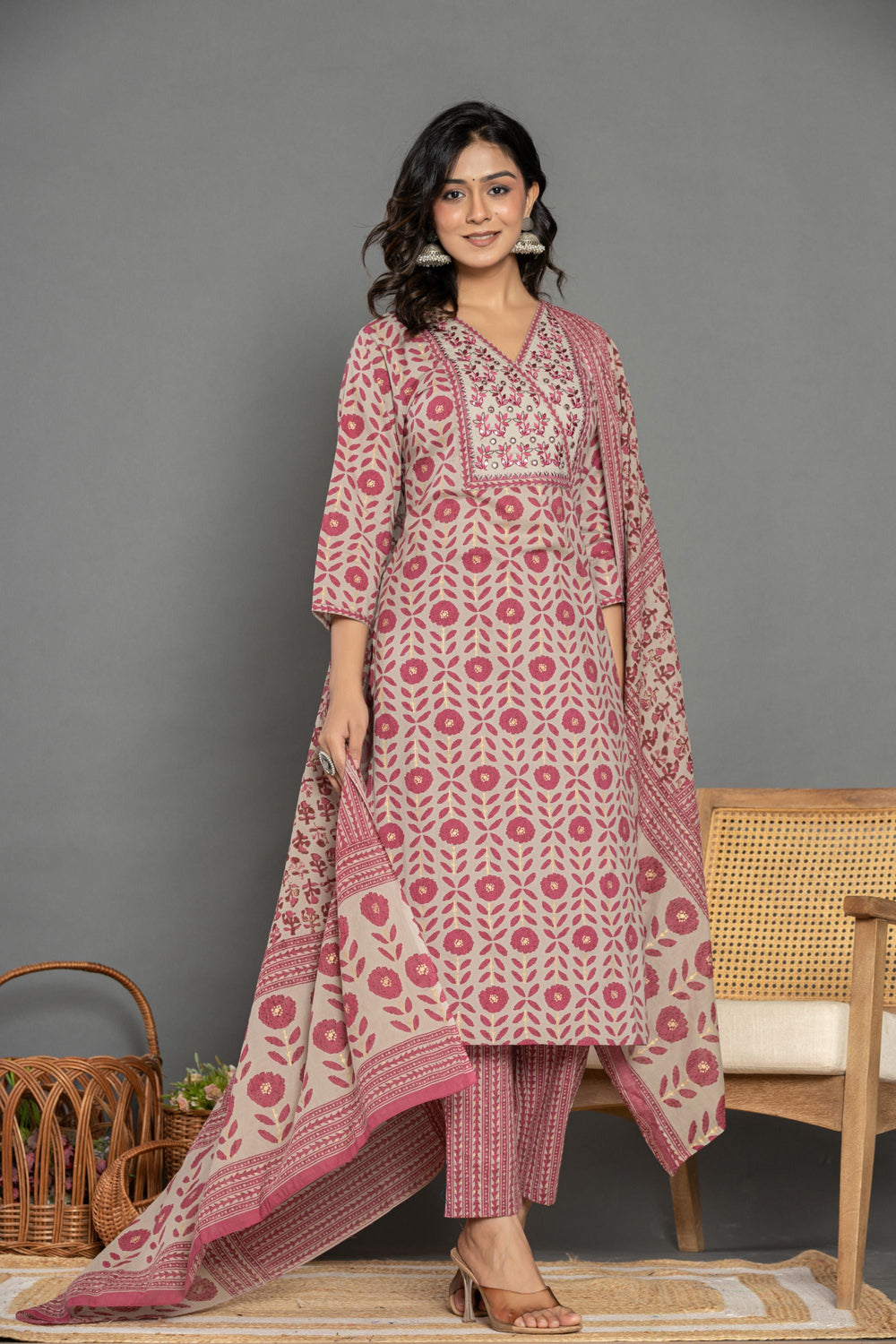 Introducing our Cobalt Grey Cotton Suit Set a masterpiece of timeless elegance and artistic craftsmanship. Crafted from the finest cotton fabric, this ensemble is a celebration of the beauty of block dye techniques. With delicate patterns and intricate lace details, this Set is the epitome of sophistication.