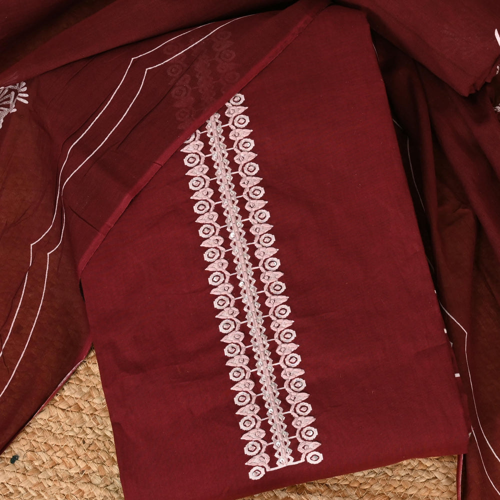 Dark Maroon Figure Cotton Unstitched Suit Set
