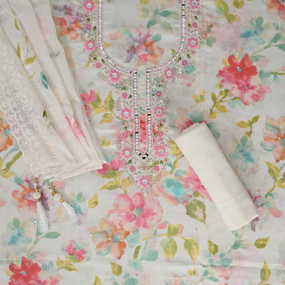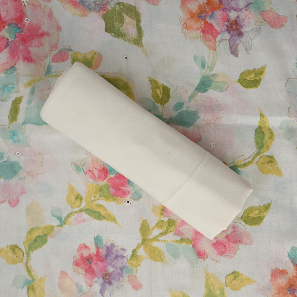 Garlic White Water Print Cotton Unstitched Suit Set