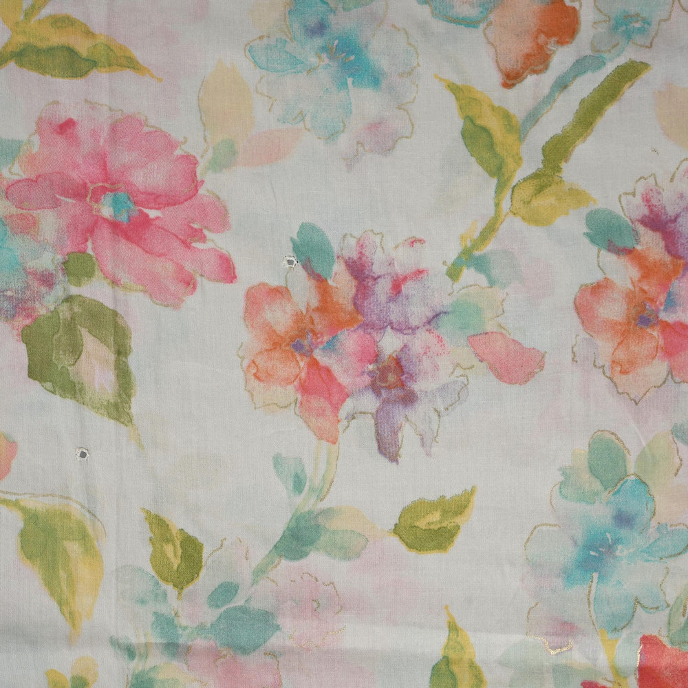 • Kurta- Pure Cotton Fabric With Water Floral Print & HandWork Neck