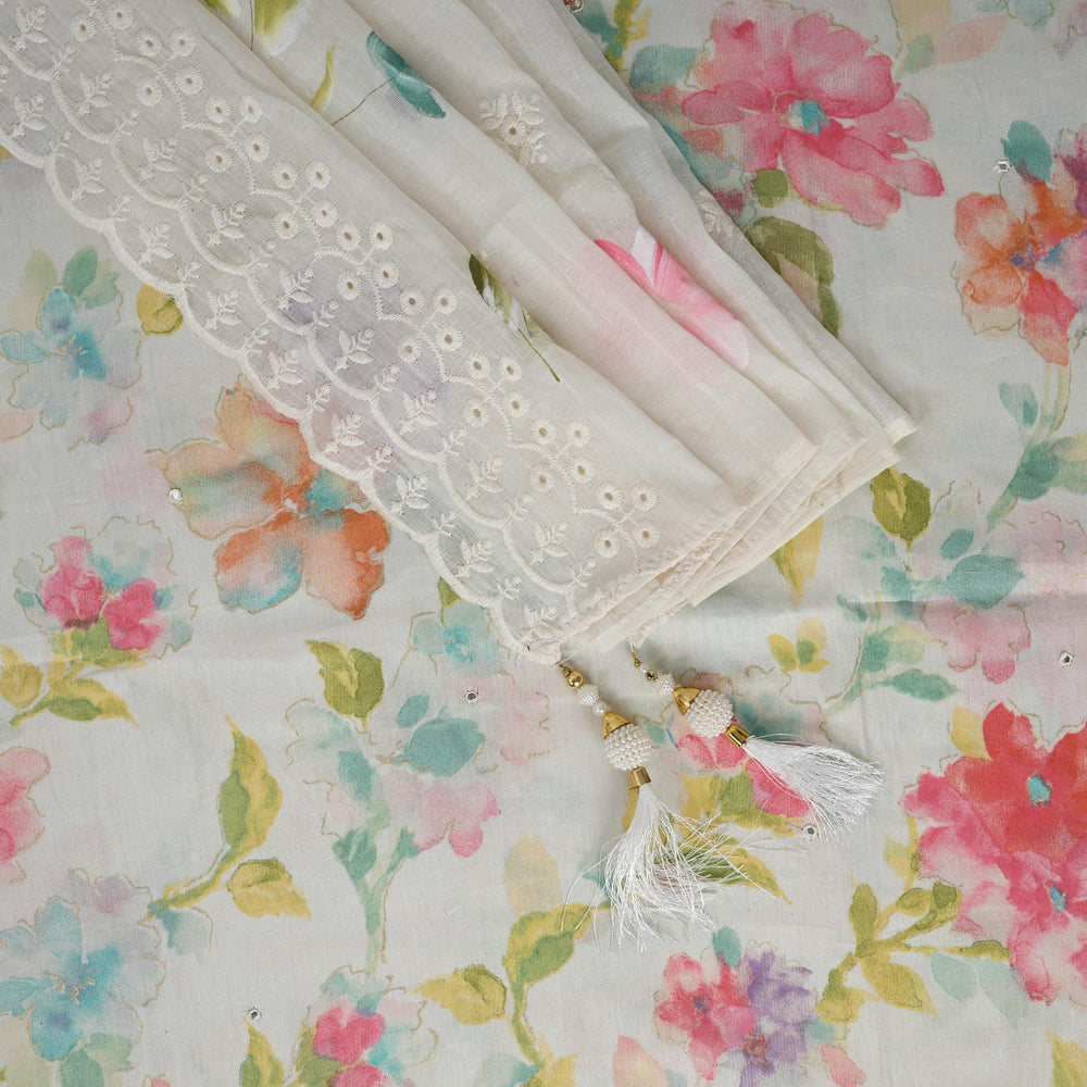 • Dupatta- Pure Mul MulDupatta with Hand Paint & Embroidery Border
