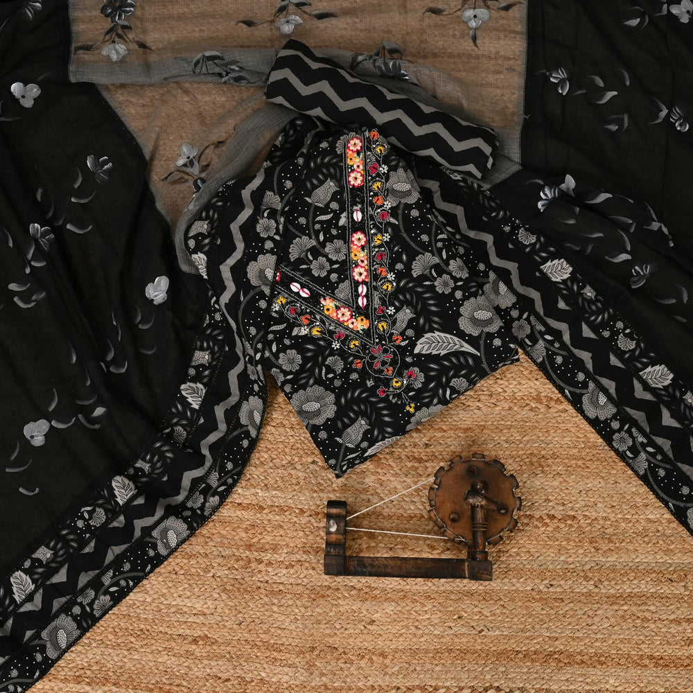 Nandan Print V Neck Cotton Unstitched Suit Set