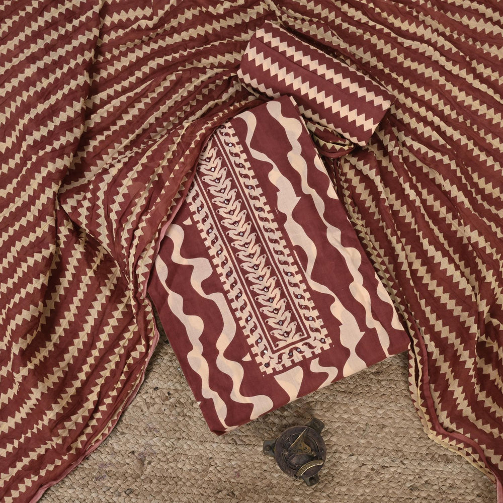 Peanut Brown Abstract Cotton Unstitched Suit Set