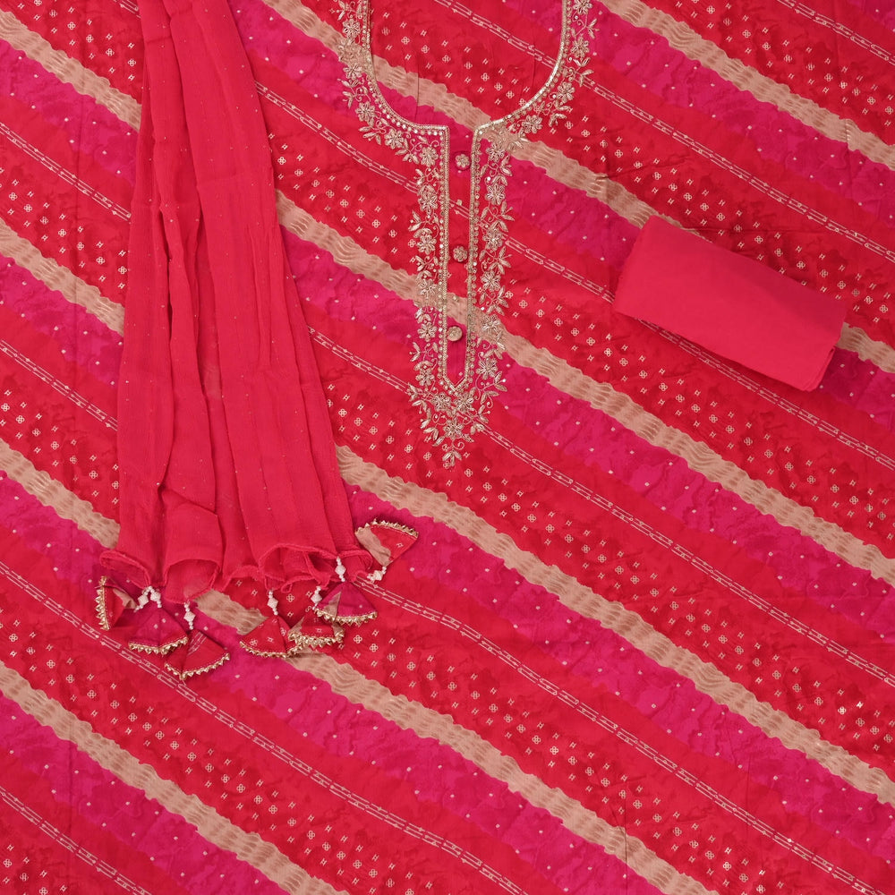 Rani Special Teej Leheriya Cotton Unstitched Suit Set