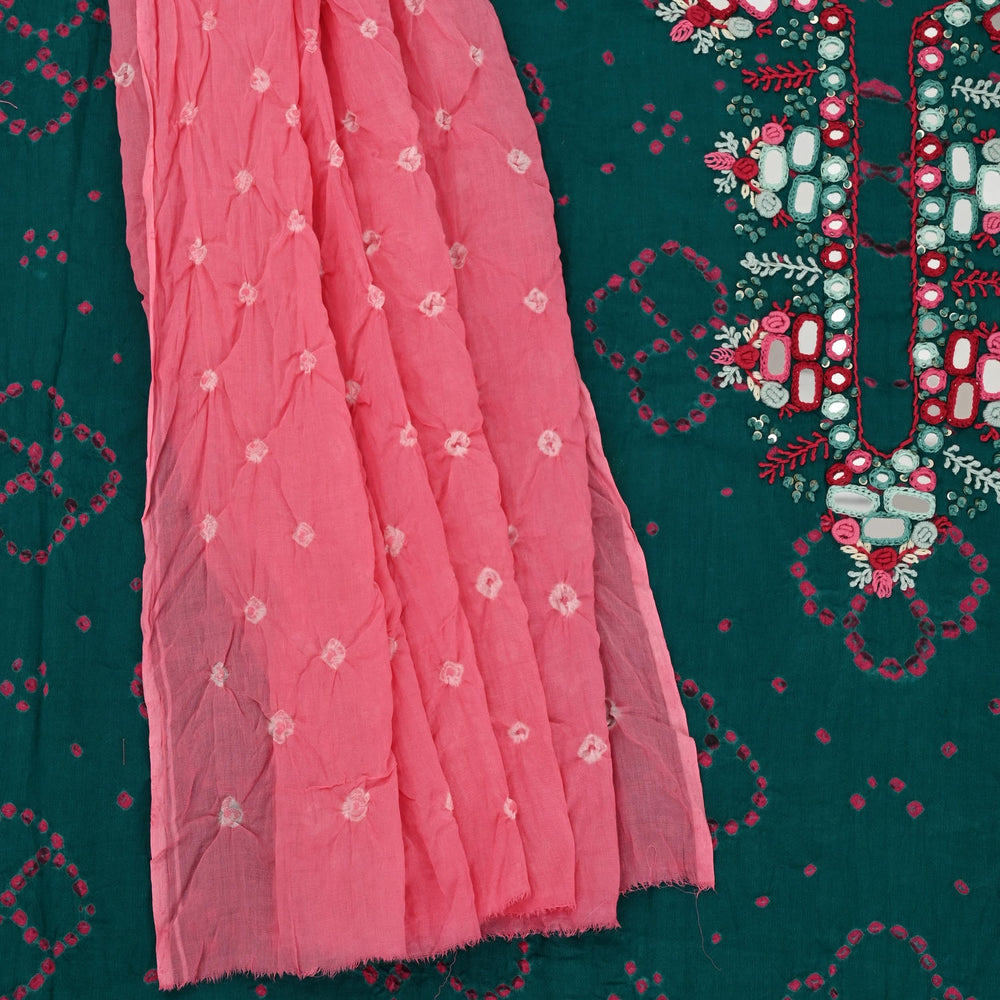 Rarest Green Bhandej Cotton Unstitched Suit Set