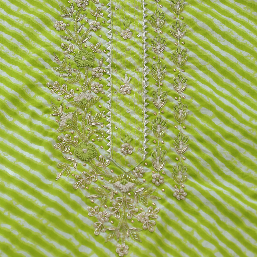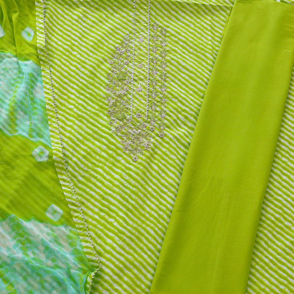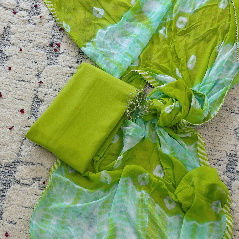 Smooth Green Leheriya Cotton Unstitched Suit Set