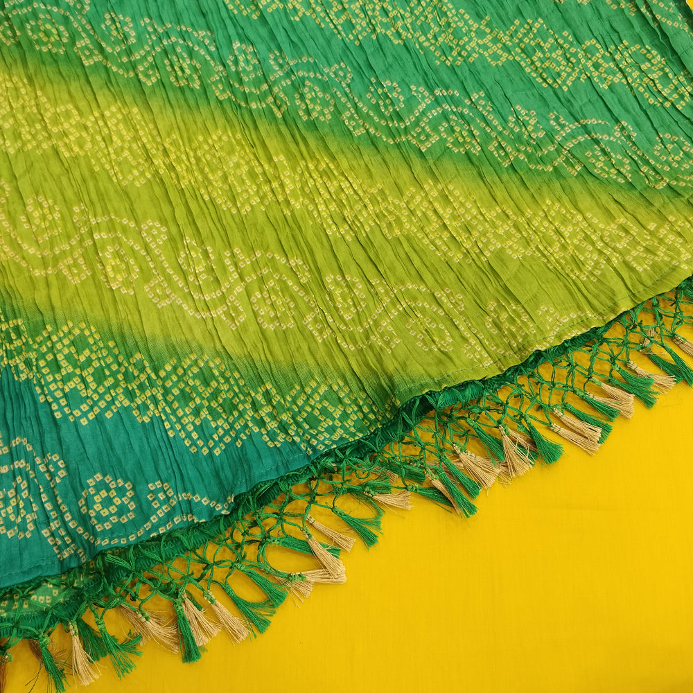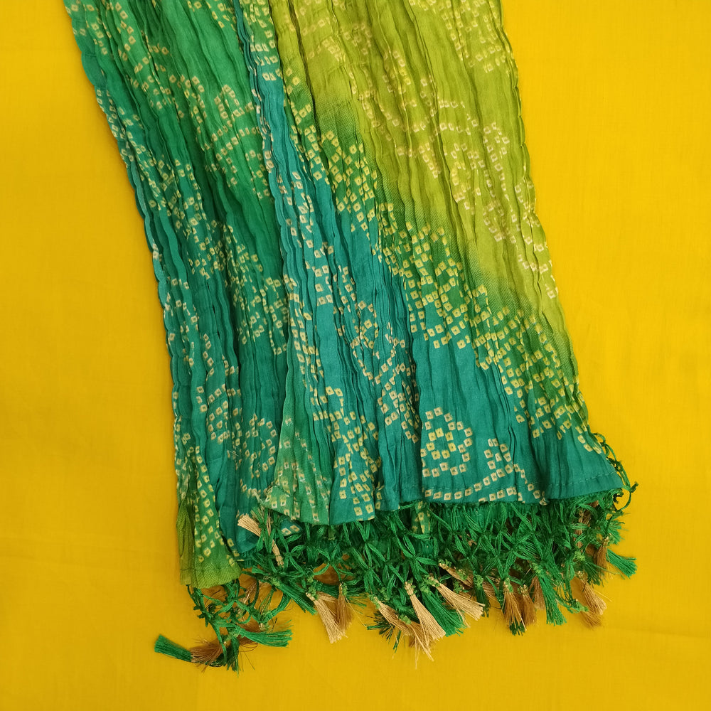 • Dupatta- Pure Muslin Bandhej Dupatta With Matching Thread Tassels