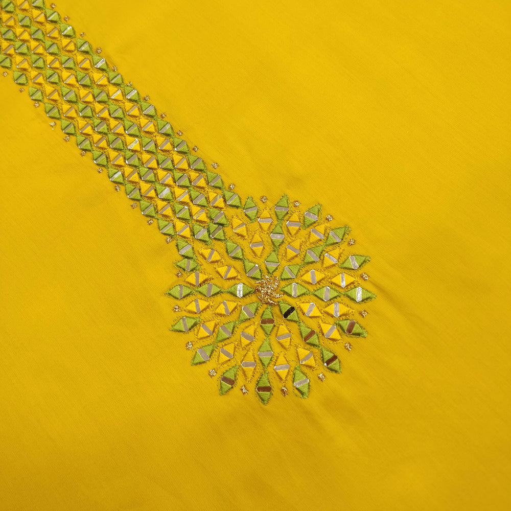 Sunflower Green Unstitched Cotton Suit Set With Muslin Silk Dupatta