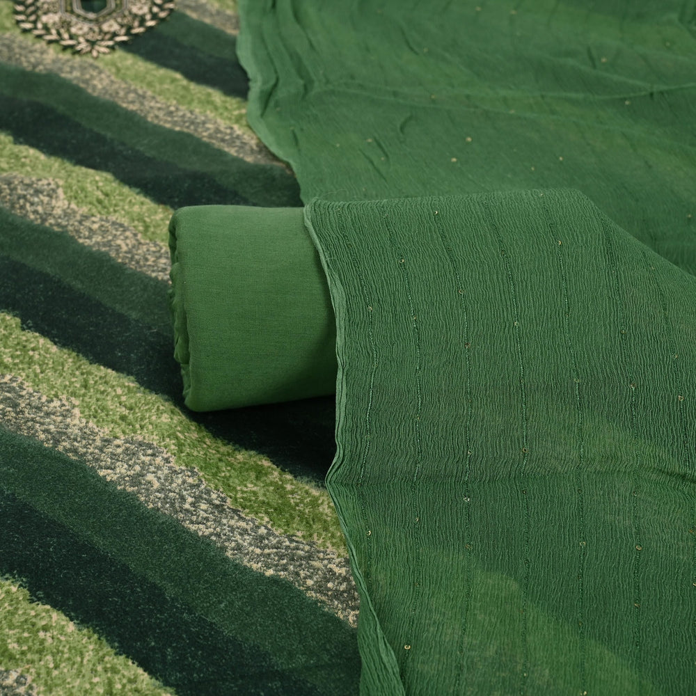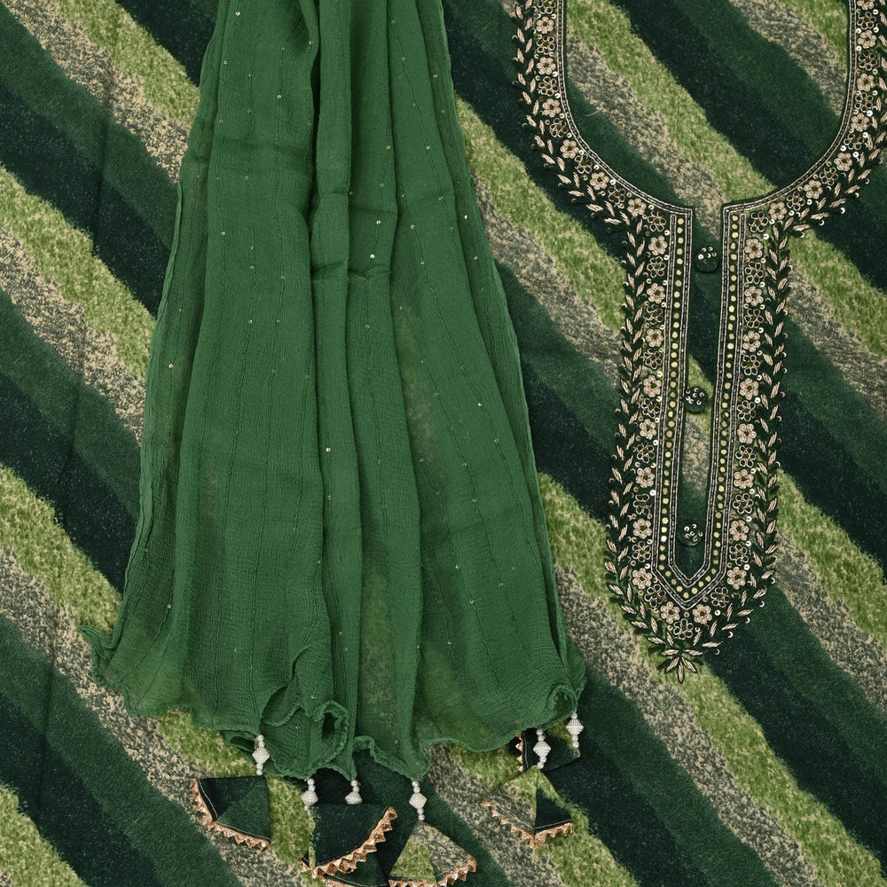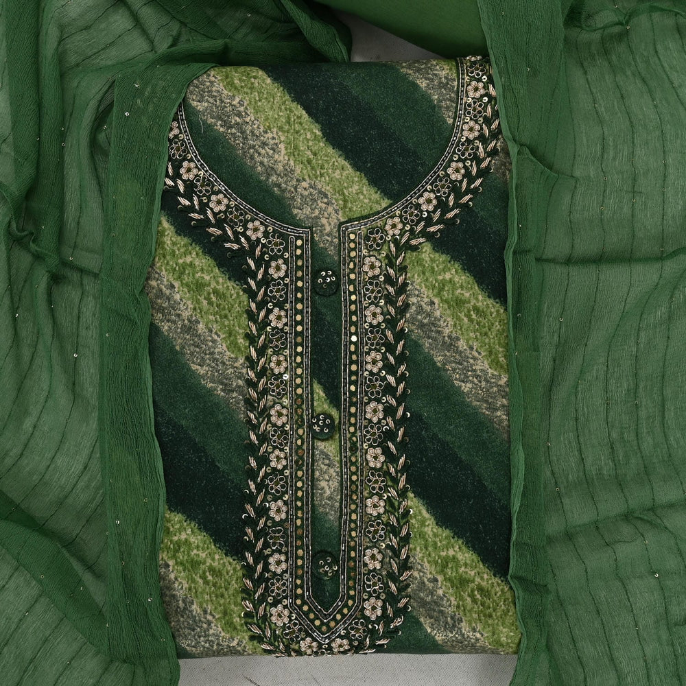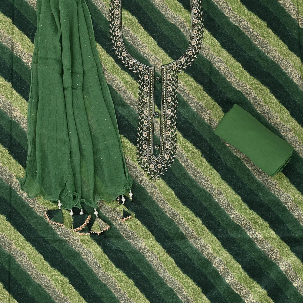 Tempting Green Leheriya Cotton Unstitched Suit Set